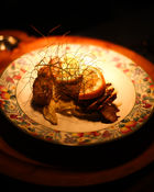 "Wonderful hospitality, delicious food, quirky barn, beautiful courtyard, excellent service. Home made cider and pastis on arrival in cottage garden. Meal in atmospheric barn surrounded by cider presses and calvados still. Plump fresh juicy oysters and succulent scallops. Top quality meat cooked on wood grill. Great cheese selection. Interesting and good value wine list"