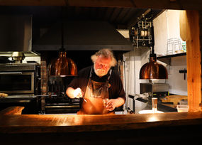 Richard and Sarah Matlock, owners of La Cidrerie Barn Restaurant, welcome you to enjoy rustic French country cooking on Thursday, Friday and Saturday evenings from April to September. We offer a relaxed and unique dining experience. Richard and his chefs, Ollie and Fin, work hard to bring the best "cuisine au feu de bois" experience possible. We source local produce where possible and only serve seasonal dishes, so you won't get Asparagus on the menu outside the 6-8 weeks that it is available!